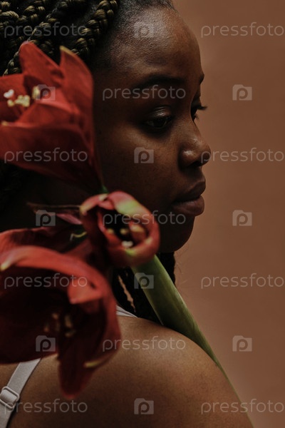 Черная женщина с красным цветом