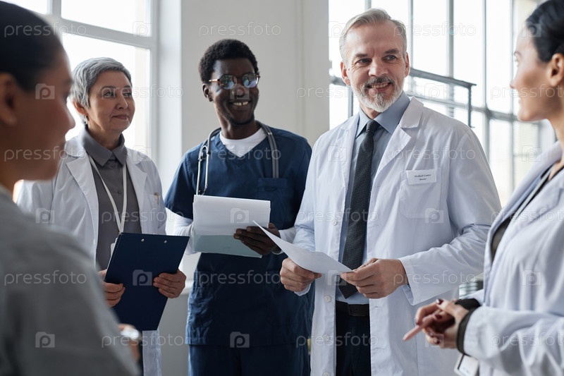 Профессиональный врач общей практики смотрит на коллегу во время разговора