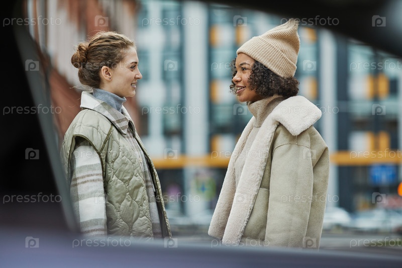 Друзья разговаривают друг с другом на открытом воздухе