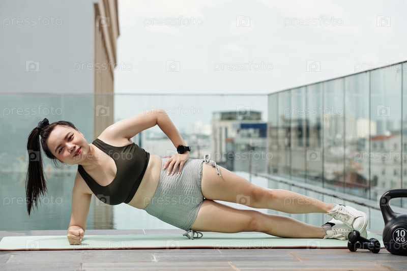Молодая женщина занимается боковой доской