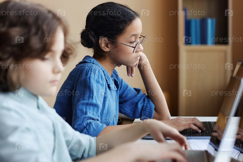 Школьники работают на компьютерах в классе