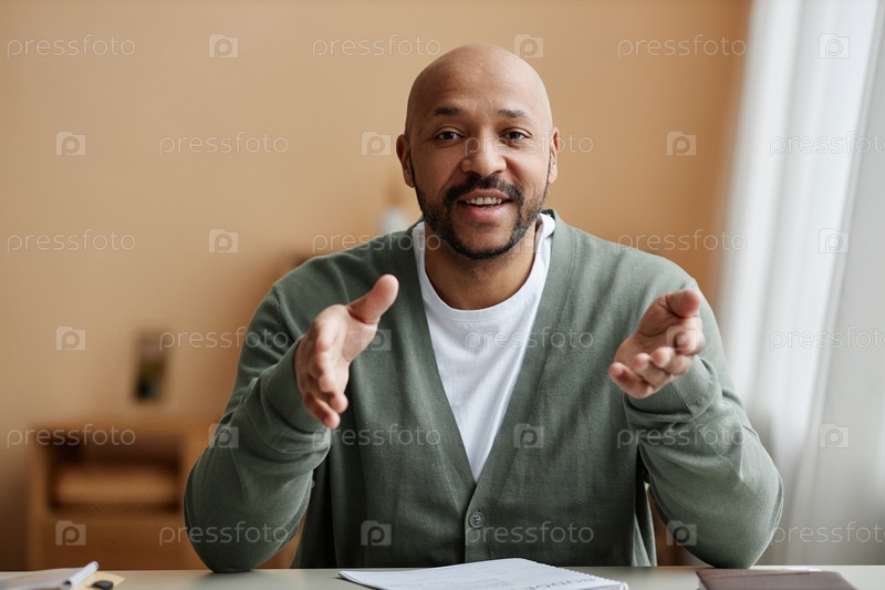Черный мужчина, говорящий оживленно перед камерой