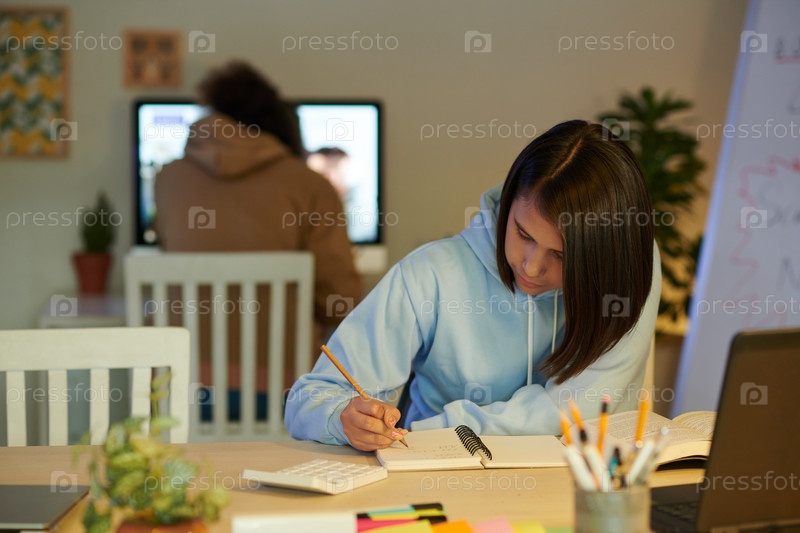 Ученица записывает формулы