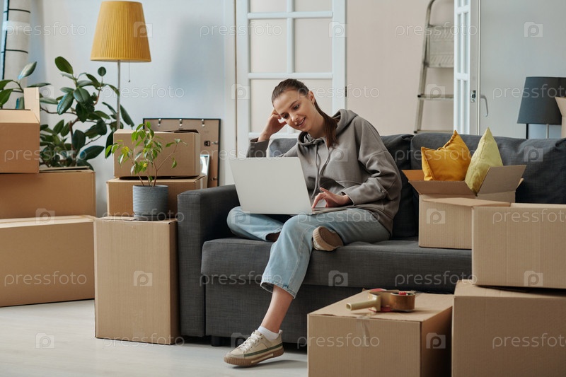 Женщина ищет новую квартиру для аренды на ноутбуке