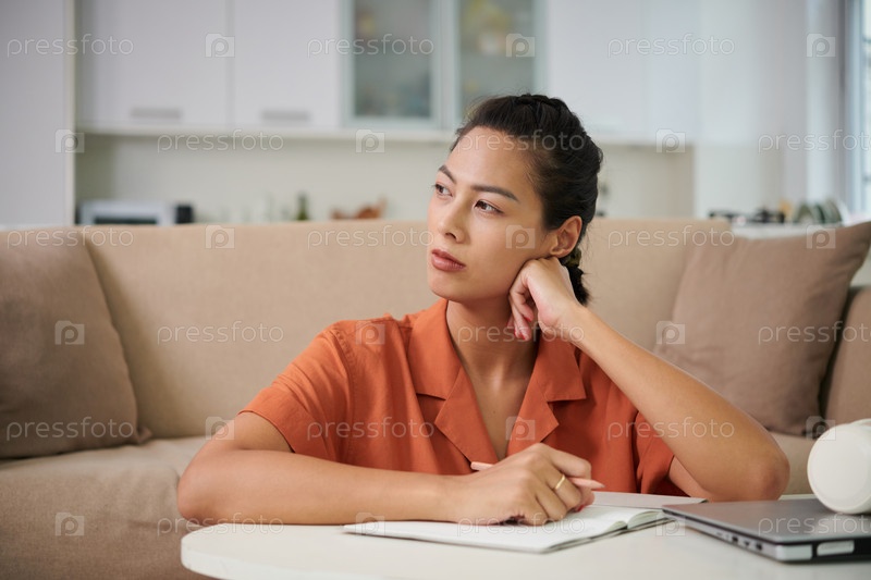 Пенсивная женщина, записывающая мысли