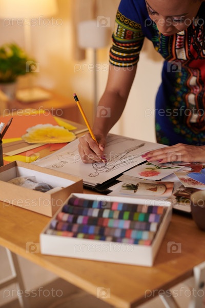 Модный дизайнер, работающий над эскизами