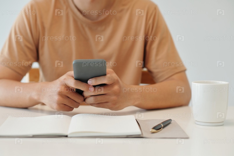 Бизнесмен читает новости на смартфоне
