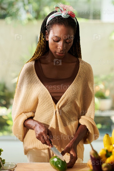 Женщина, режущая авокадо