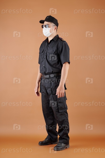 Охранник в медицинской маске