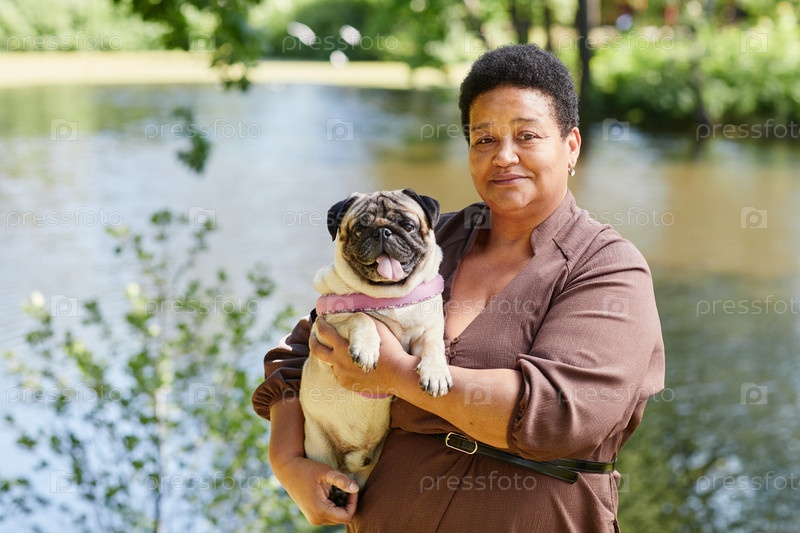 Портрет пожилой женщины с собакой в парке
