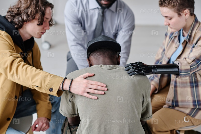 Люди, поддерживающие мужчину в депрессии