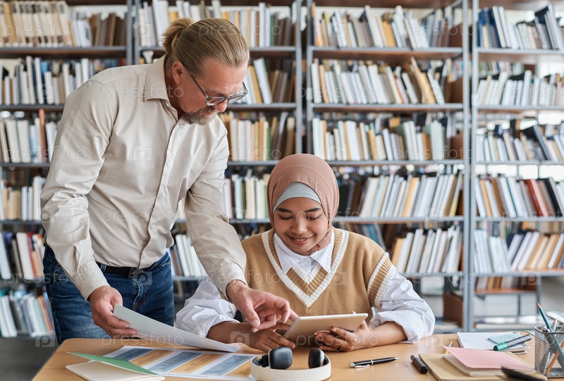 Учитель разговаривает со студентом на уроке