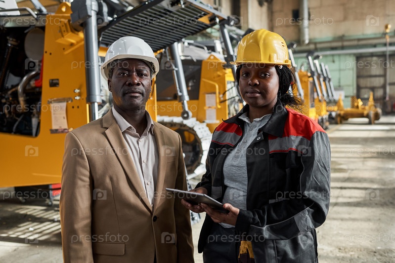 Рабочий с инженером, работающим на фабрике