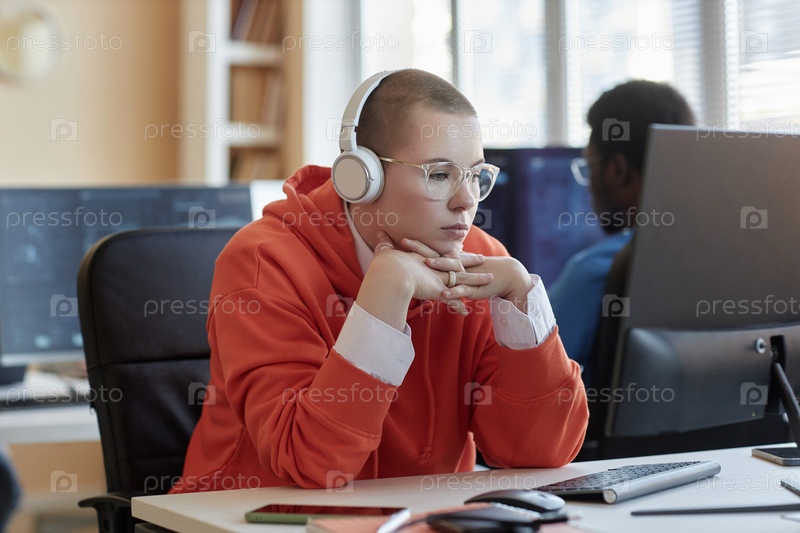 Молодой менеджер по ИТ-поддержке или инженер кибербезопасности в наушниках