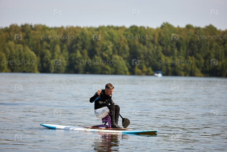 Человек с инвалидностью падлборд на озере водные виды спорта на открытом воздухе в природе