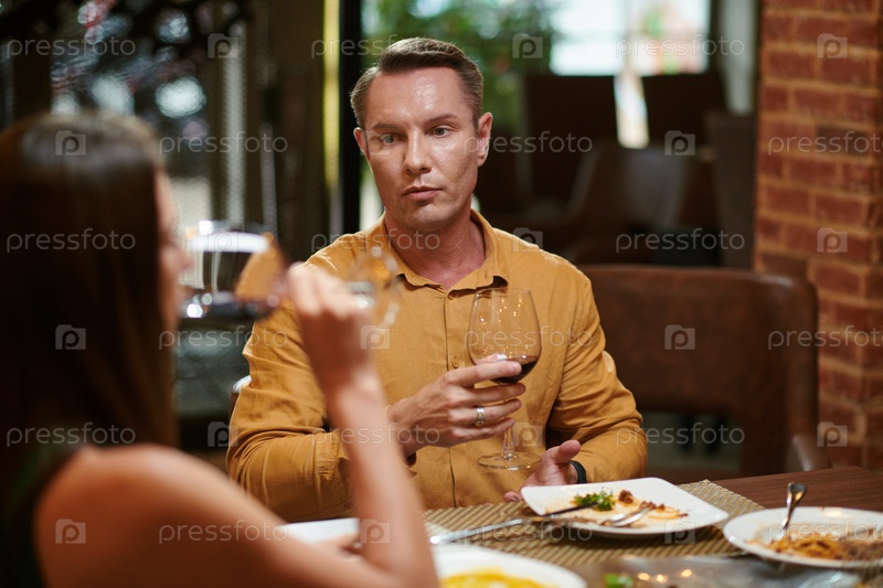 Муж и жена едят ужин