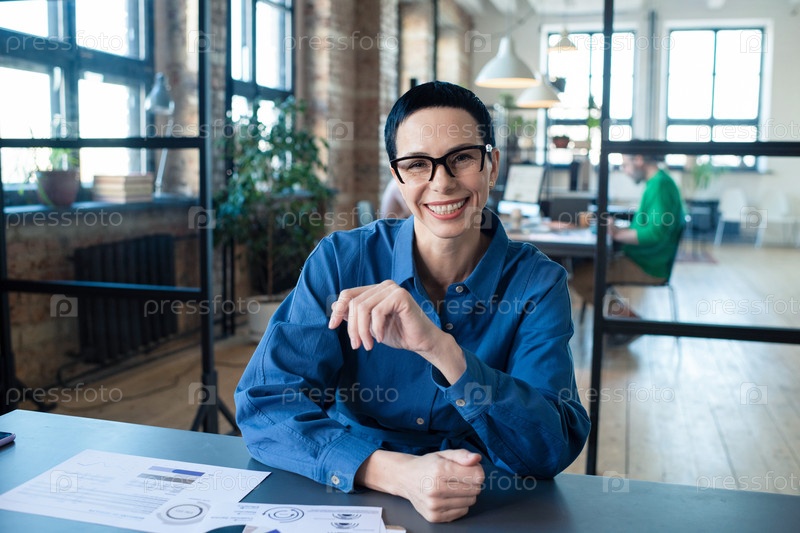 Успешная деловая женщина сидит в офисе