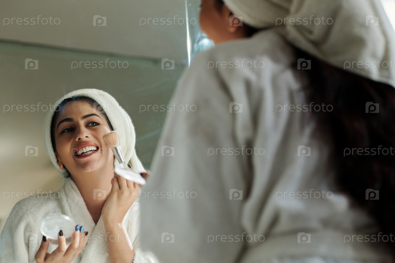 Женщина, применяющая лицевой порошок