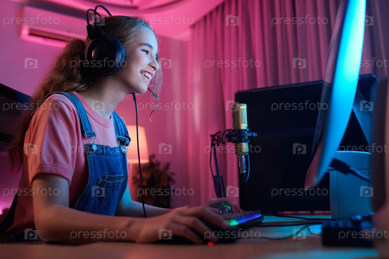 Подростковая девушка играет в видеоигры