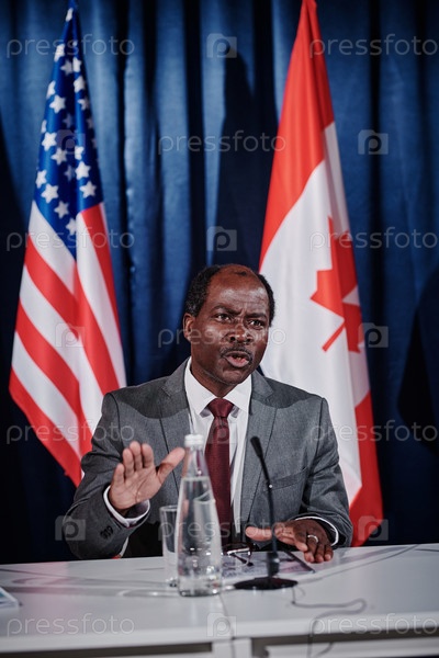 Американский политик разговаривает с журналистами