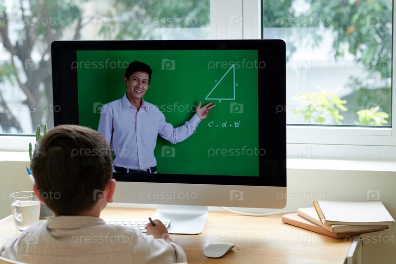 Мальчик посещает онлайн-класс по тригонометрии
