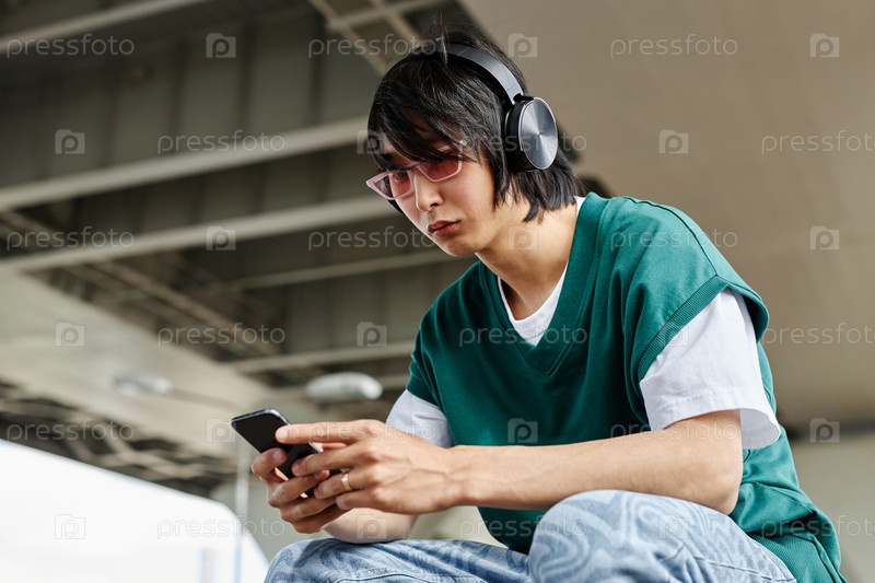 Молодой азиатский мужчина в одежде уличного стиля