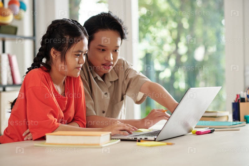 Дети работают вместе на ноутбуке