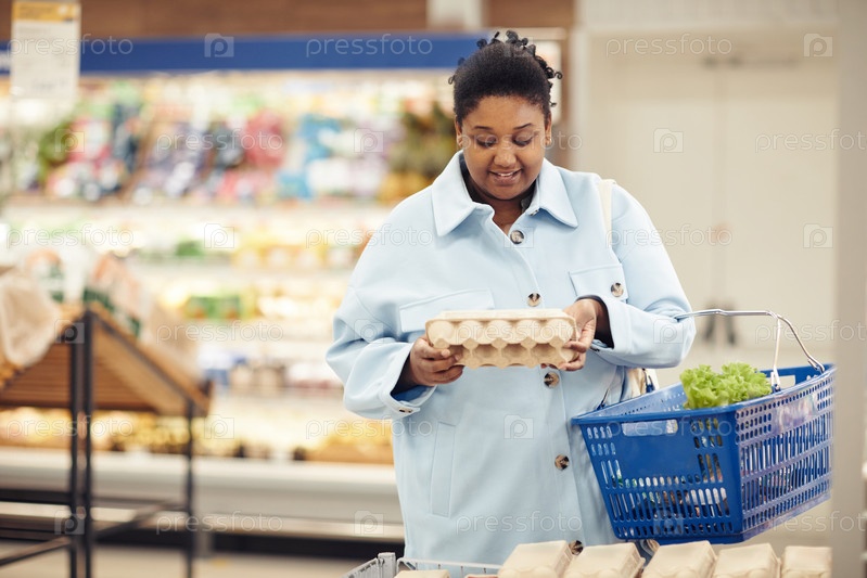 Женщина, покупающая продукты в супермаркете