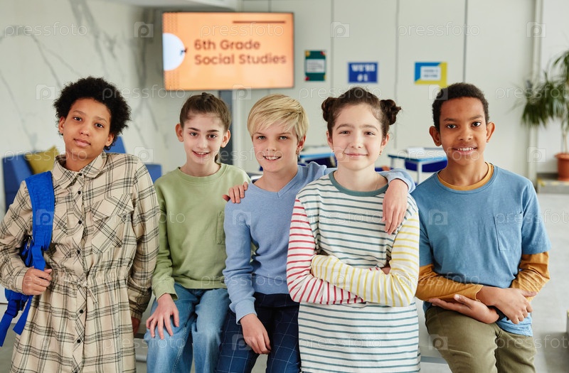 Мультиэтническая группа друзей в школе