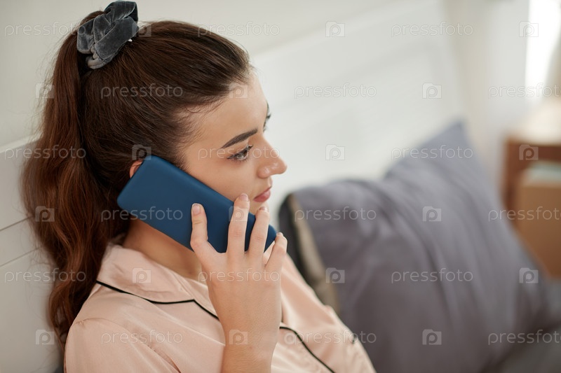 Женщина в пижаме, разговаривающая по телефону