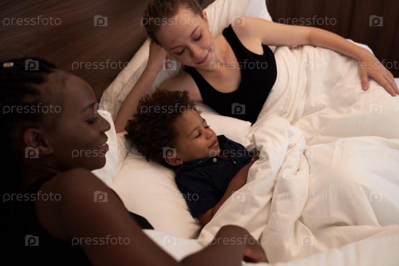 Матери и сын, лежащие в постели