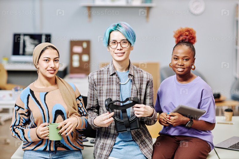 Команда творческих молодых профессионалов, смотрящих на камеру в офисе