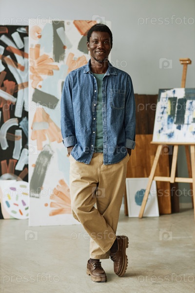 Счастливый молодой творческий ремесленник в повседневной одежде стоит перед камерой