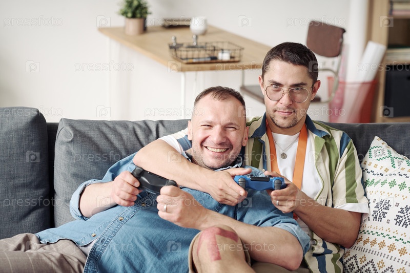 Гей-пары играют на игровой консоли