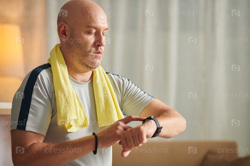 Мужчина средних лет проверяет фитнес-трекер