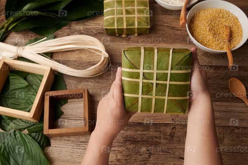 Человек, делающий липкие рисовые торты