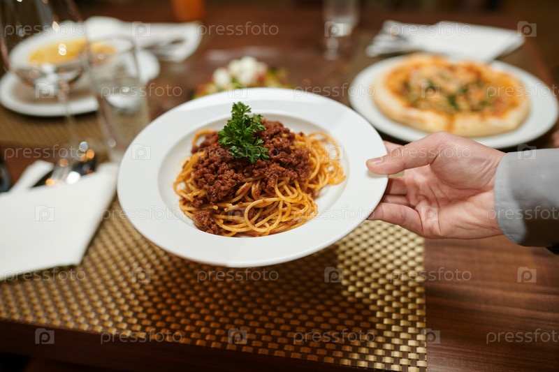 Официант, подающий спагетти
