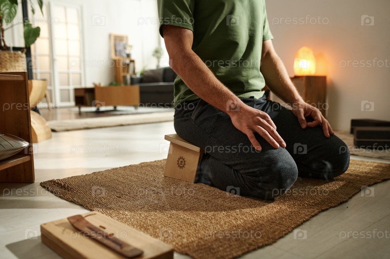 Мужчина делает упражнения по расслаблению дома