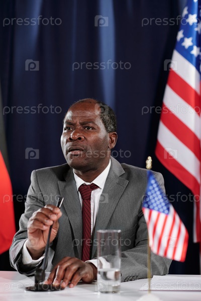 Зрелый афроамериканский оратор или политик, принимающий участие в конференции