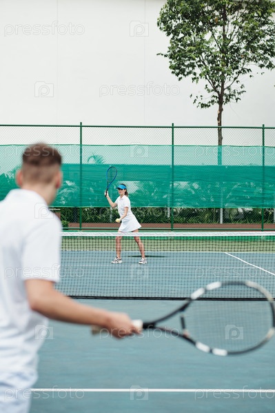 Пара наслаждается игрой в теннис