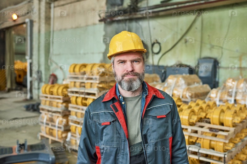 Рабочий в униформе, работающий на складе