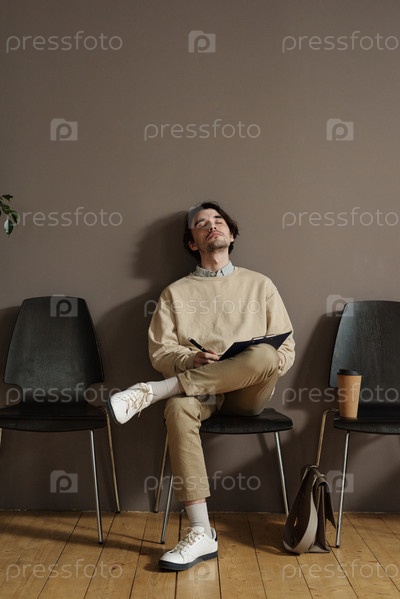 Молодой бизнесмен отдыхает во время ожидания встречи