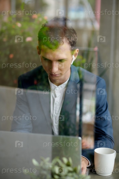 Бизнесмен, работающий на ноутбуке в кафе