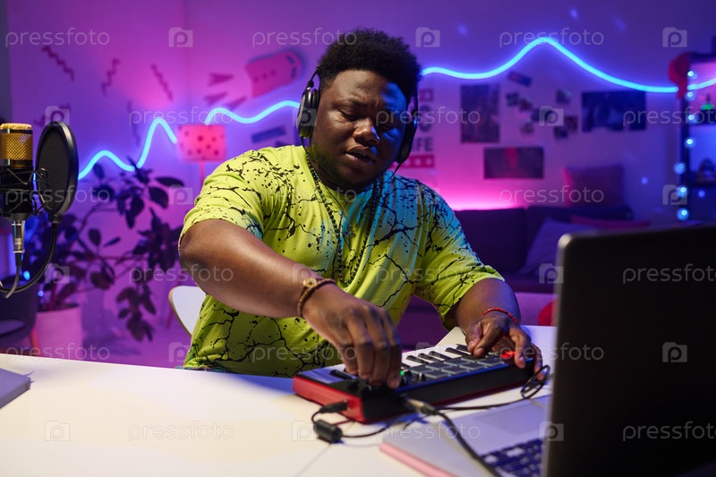 Молодой парень создает музыкальный трек