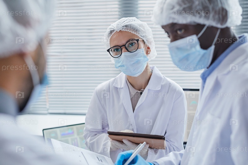 Женщина, работающая со своими коллегами в лаборатории