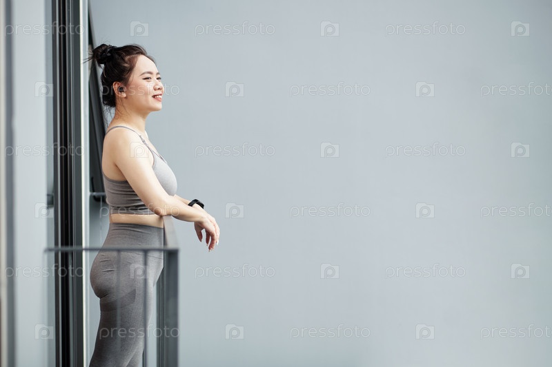 Усталая спортсменка дышит свежим воздухом