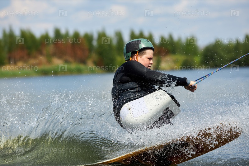 Акционная съемка подростка с инвалидностью, занимающегося вейкбордингом на воде