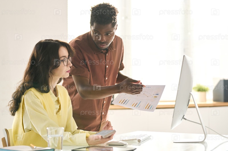 Бизнесмен обсуждает графики со своим коллегой
