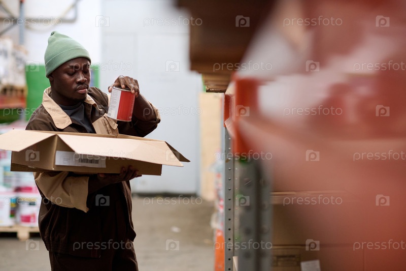 Работник склада упаковывает товары в коробку