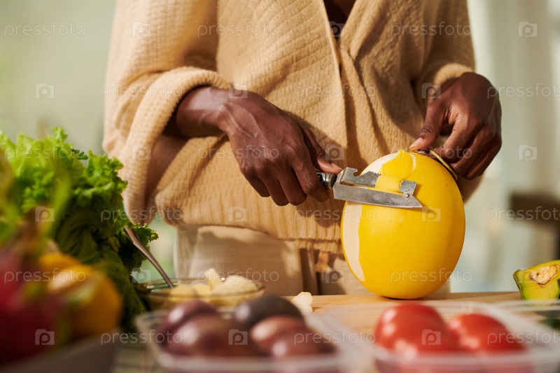 Женщина, очищающая дыни